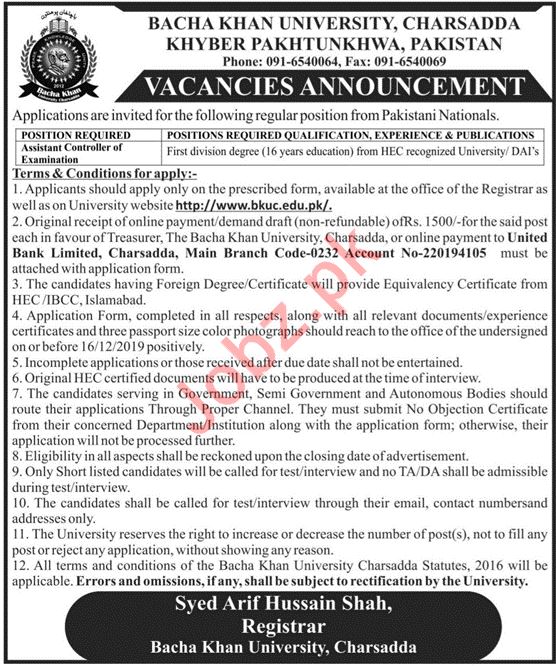 Latest Bacha Khan University Management Posts Charsadda 2025