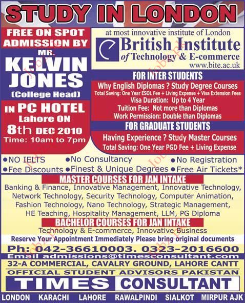 Bachelor and Master Course Admission in London Read newspaper ad for exact details.