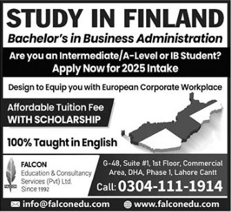 Admissions in Falcon Education and Consultancy Services 2025 for Business Administration has been announced. Eligible students can apply for academic admissions 2025 in Falcon Education and Consultancy Services Lahore Punjab Pakistan for Science College. Students for admissions in can apply for online or campus classes as per Private institute criteria till admission closing date. Read newspaper ad for exact details.