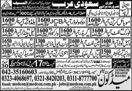 Medcon International Recruiters invites applications for job positions advertised in daily Express dated 16 April 2024 for following vacancies in Saudi Arabia, saudi arabia Saudi Arabia.