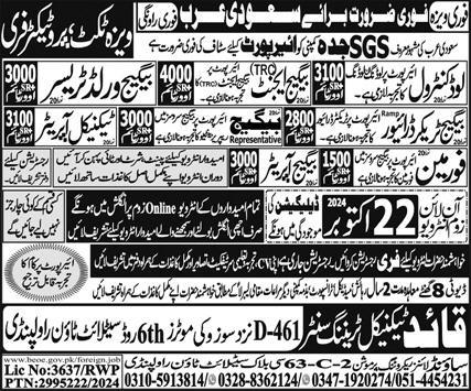 Quaid Technical Training Center invites applications for job positions advertised in daily Express dated 19 October 2024 for following vacancies in Saudi Arabia, saudi arabia Saudi Arabia.