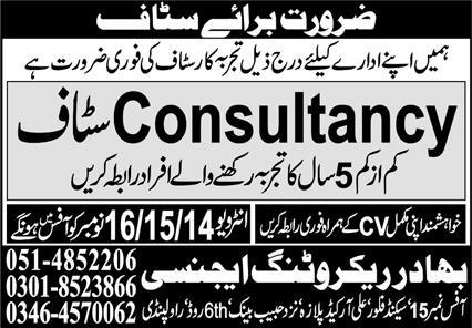 Bahadur Recruitment Agency Overseas Employment Promoter jobs advertisement dated about 14 November 2024 in daily Express Newspaper invites application for the vacant post of consultancy staff in Rawalpindi, rawalpindi Punjab Pakistan. Educational qualifications required Intermediate, Bachelor and BA etc.