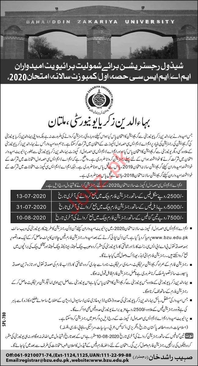 Bahauddin Zakariya University Admissions 2020 for Masters