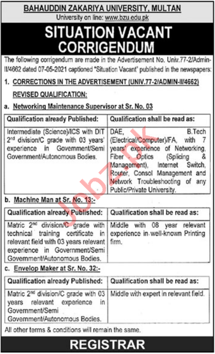Bahauddin Zakariya University BZU Jobs 2021 Envelop Maker