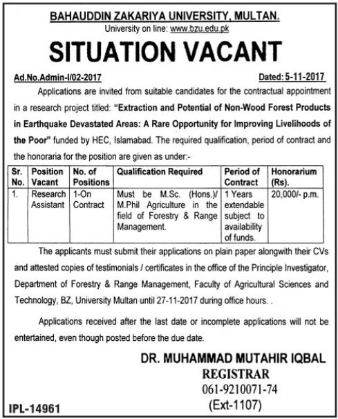Bahauddin Zakariya University BZU Jobs Multan
