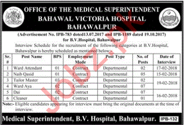 Bahawal Victoria Hospital Bahawalpur Jobs 2018