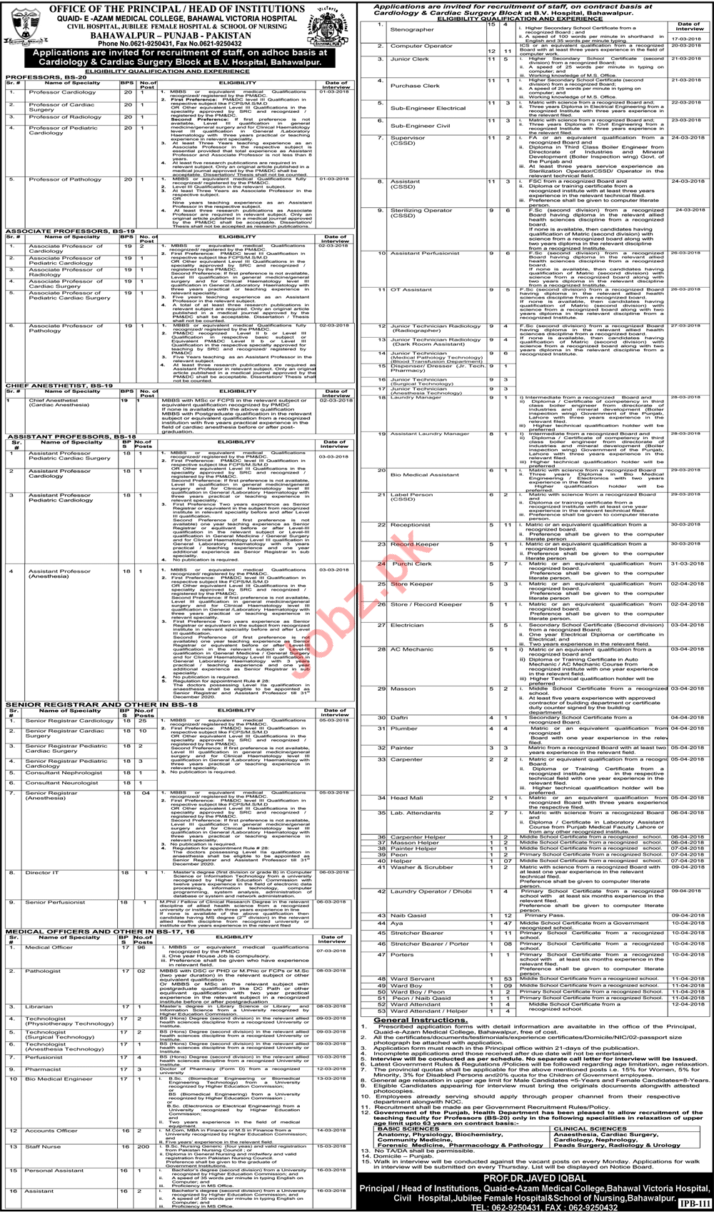 Bahawal Victoria Hospital Careers