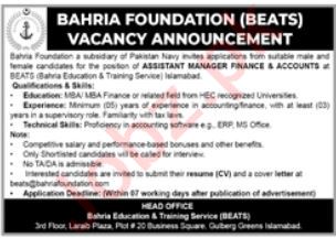 Bahria Foundation Assistant Manager Finance & Accounts Jobs