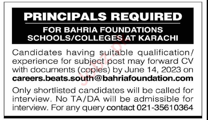 Latest Education jobs and others Private jobs in Bahria Foundation Schools BFS closing date is around undefined NaN, NaN, see exact from ad. Read complete ad online to know how to apply on latest Bahria Foundation Schools BFS job opportunities.