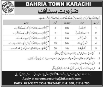 Latest Bahria Town Pvt Limited Security Posts Karachi 2025