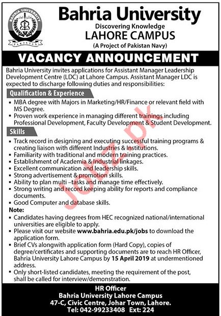 Apply as per details in job advertisement. Login to view further details of how to apply via https://www.jobz.pk online.