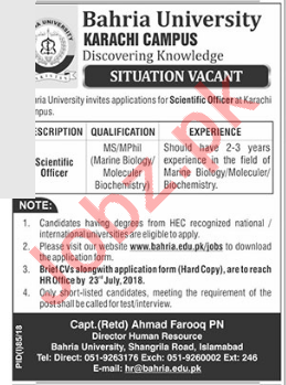 Apply as per details in job advertisement. Login to view further details of how to apply via https://www.jobz.pk online.