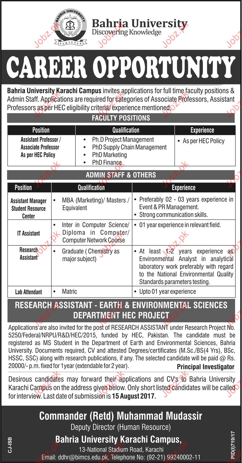 Latest Bahria University Teaching Posts Karachi 2025