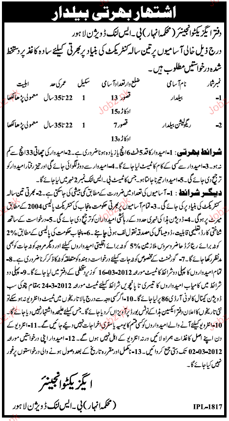 Apply as per details in job advertisement. Login to view further details of how to apply via https://www.jobz.pk online.