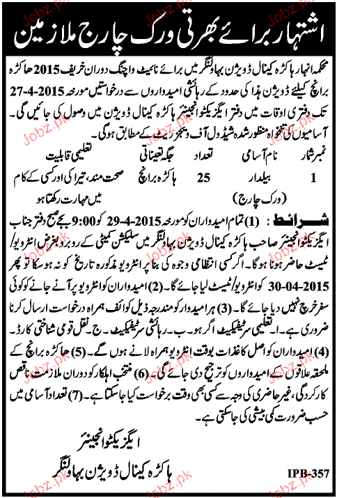 Apply as per details in job advertisement. Login to view further details of how to apply via https://www.jobz.pk online.