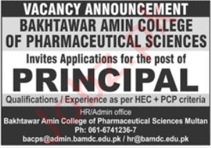 Bakhtawar Amin College of Pharmaceutical Sciences Jobs 2022