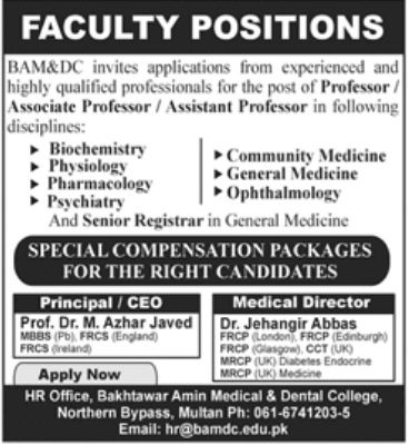 Latest Bakhtawar Amin Medical & Dental College Education Posts Multan 2025