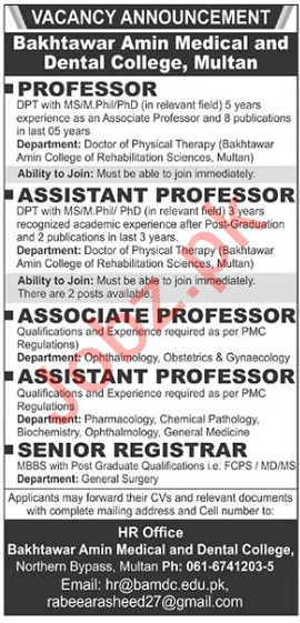 Vacancies in Bakhtawar Amin Medical & Dental College Advertisement March 2021