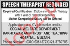 Bakhtawar Amin Trust Hospital Multan Speech Therapist Jobs