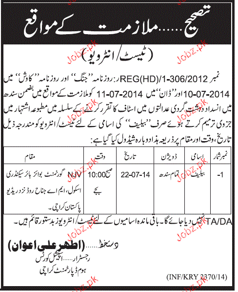 Latest Government Department Posts Karachi 2025