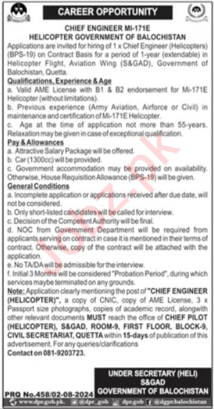 Government of Balochistan latest Government Engineering jobs and others can be applied till August 19, 2024 or as per closing date in newspaper ad. Read complete ad online to know how to apply on latest Government of Balochistan job opportunities.