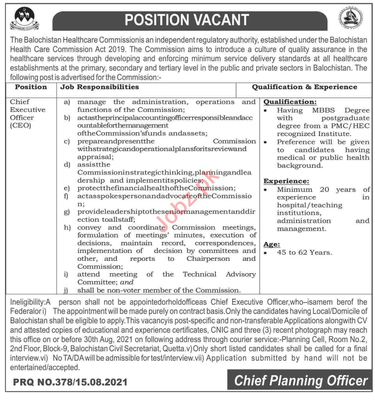Balochistan Healthcare Commission Quetta Jobs 2021