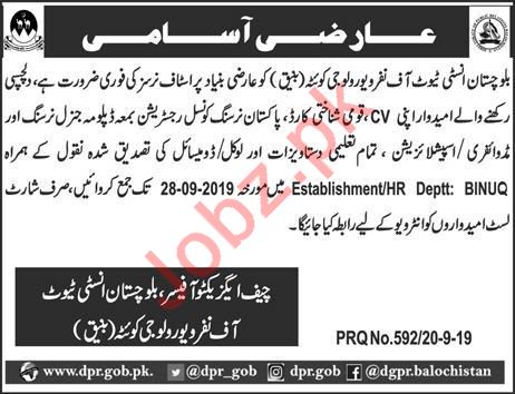 Vacancies in Balochistan Institute of Nephro Urology BINUQ Advertisement September 2019