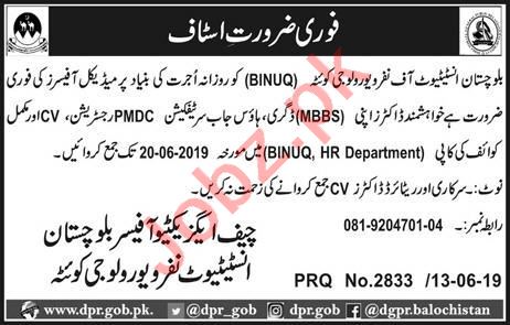 Latest Balochistan Institute of Nephro Urology BINUQ Medical Posts Quetta 2025