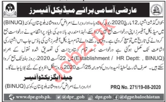 Latest Balochistan Institute of Nephro Urology BINUQ Medical Posts Quetta 2025