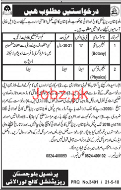 Latest Balochistan Residential College Teaching Posts Loralai 2025