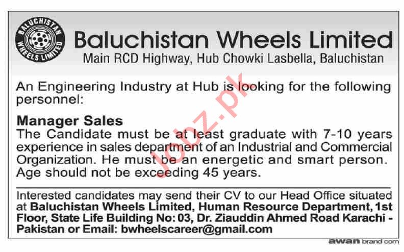 Baluchistan Wheels Limited Karachi Jobs 2021 For Managers