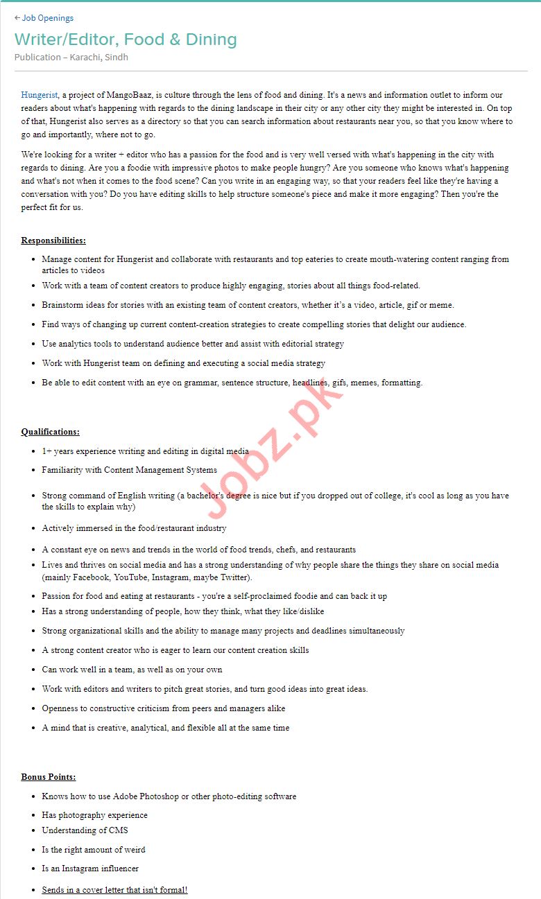 Apply as per details in job advertisement. Login to view further details of how to apply via https://www.jobz.pk online.