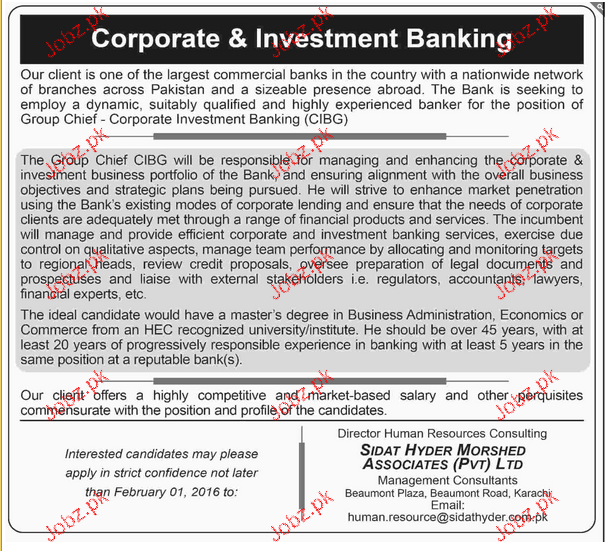 Apply as per details in job advertisement. Login to view further details of how to apply via https://www.jobz.pk online.