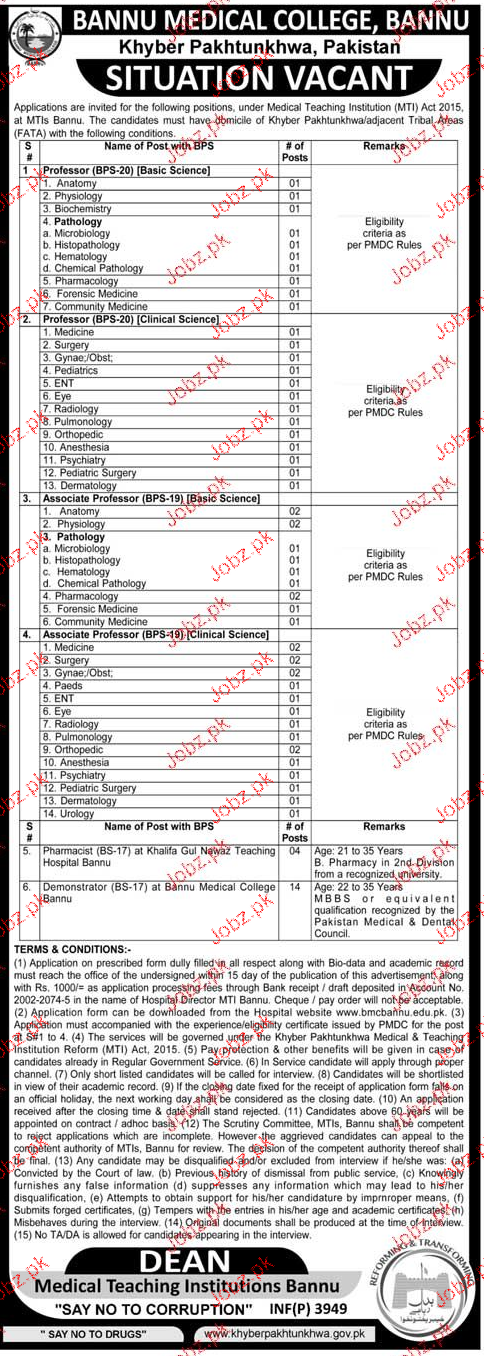 Latest Bannu Medical College Teaching Posts Bannu 2025