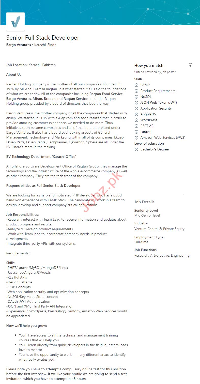 Latest Bargo Ventures IT Posts Karachi 2025