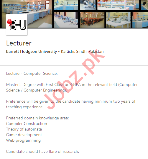 Latest Barrett Hodgson University Education Posts Karachi 2025