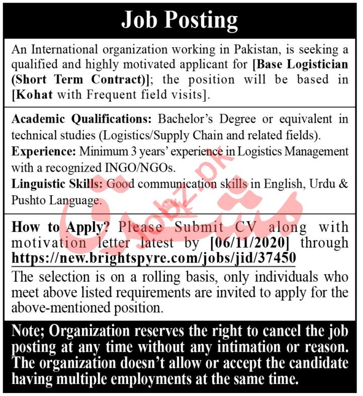 Base Logistician Jobs 2020 In Kohat