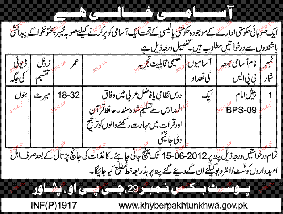 Apply as per details in job advertisement. Login to view further details of how to apply via https://www.jobz.pk online.