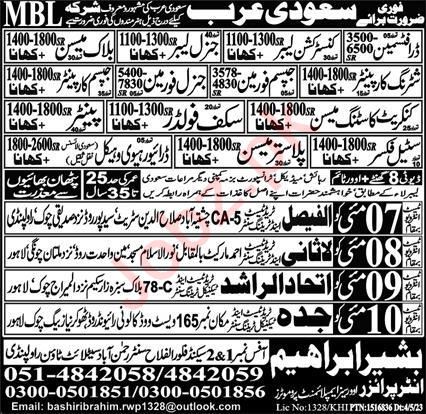 Vacant posts including concrete casting mason, steel fixer, shuttering carpenter, plaster mason, driver, general labor, draftsman, gypsum foreman, block mason, general foreman, heavy vehicle driver, construction labor, gypsum carpenter, painter and scaffolder are announced in Bashir Ibrahim Enterprises OEP Riyadh, riyadh Saudi Arabia as per 7 May 2023 advertisement in daily Express Newspaper. Candidates with Matric and Middle etc. educational background will be preferred.