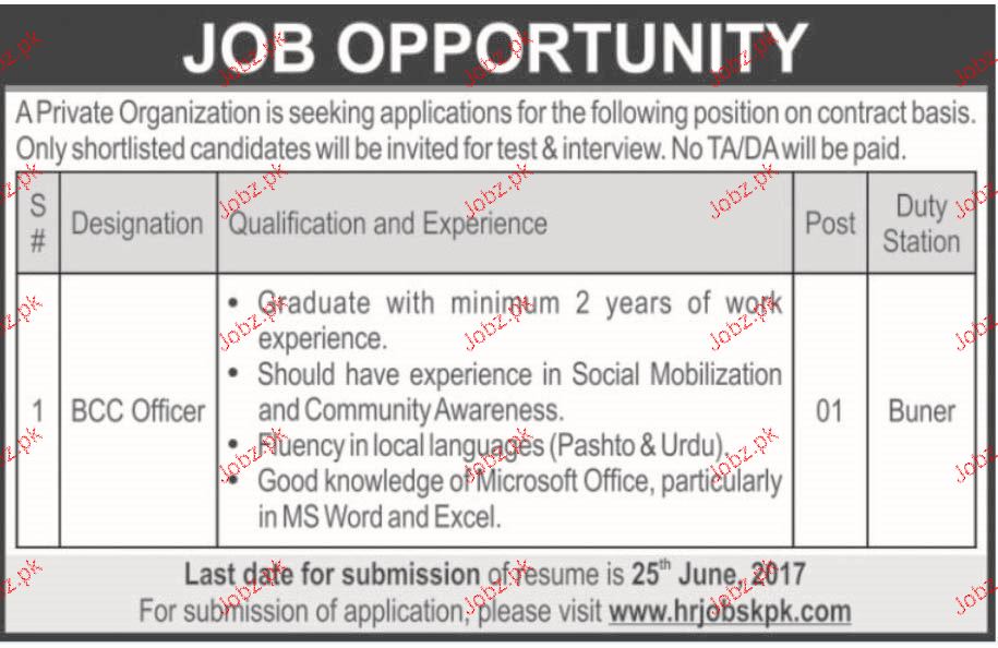 Apply as per details in job advertisement. Login to view further details of how to apply via https://www.jobz.pk online.