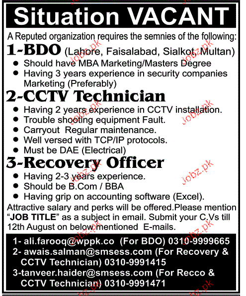 BDO, CCTV Technician and Recovery Officers Job Opportunity