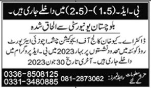 Admissions in Doctor AQ Khan College 2023 for B.Ed Programs has been announced. Doctor AQ Khan College Quetta Balochistan Pakistan welcomes students to apply for admissions in academic year 2023 in Management College. Eligible candidates for admissions in B.ed can apply as per Private institute criteria and before closing date 30 June 2023 after reading advertisement online. Read newspaper ad for exact details.