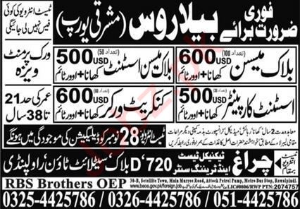 RBS Brothers Recruiting Agency Minsk, minsk Belarus invites applications from eligible candidates for the post of concrete worker, assistant carpenter, block mason and block mason assistant as per advertisement of November 26, 2023 published in daily Express Newspaper. Educational qualifications required Middle, Matric and Intermediate etc.