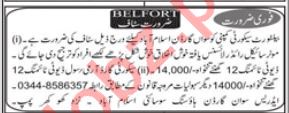 Apply as per details in job advertisement. Login to view further details of how to apply via https://www.jobz.pk online.