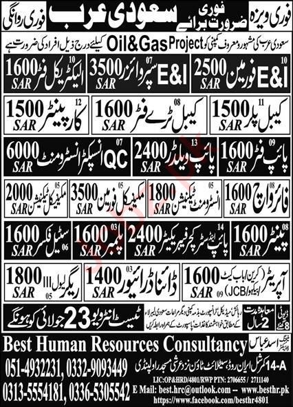 Best Human Resources Consultancy is looking for candidates for following posts as per job advertisement published in daily Express Newspaper of July 22, 2024 for location Riyadh, riyadh Saudi Arabia: