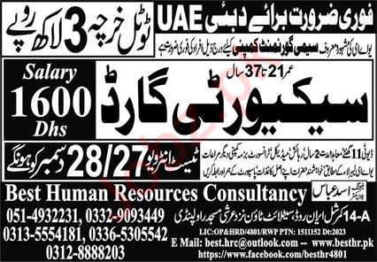 Best Human Resources Consultancy Dubai, dubai Dubai invites applications from eligible candidates for the post of security guard as per advertisement of December 26, 2023 published in daily Express Newspaper. Persons with Middle, Primary and Matric etc. education can apply.