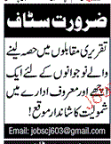Apply as per details in job advertisement. Login to view further details of how to apply via https://www.jobz.pk online.