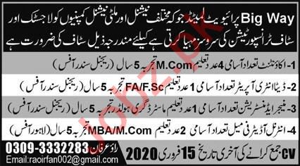 Latest Big Way Private Limited Management Posts Lahore 2025