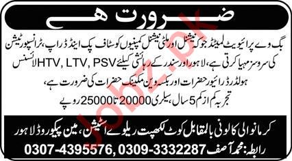 Latest Big Way Private Limited Driving Posts Lahore 2025