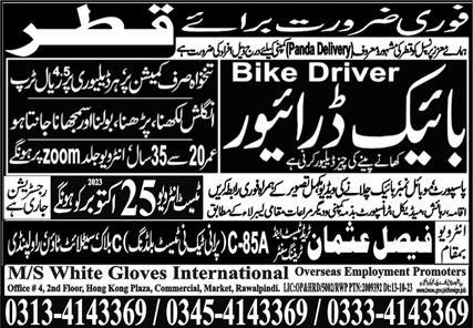 Latest Overseas jobs in Faisal Usman Trade Test & Training Center in Driving and others can be applied till 25 October 2023 or as per closing date in newspaper ad. Read complete ad online to know how to apply on latest Faisal Usman Trade Test & Training Center job opportunities. Delivery, English (UK), Driving and Courier skills may beneficial for these Faisal Usman Trade Test & Training Center jobs. Earn more by overtime. Free transport, accommodation and medical may be available.